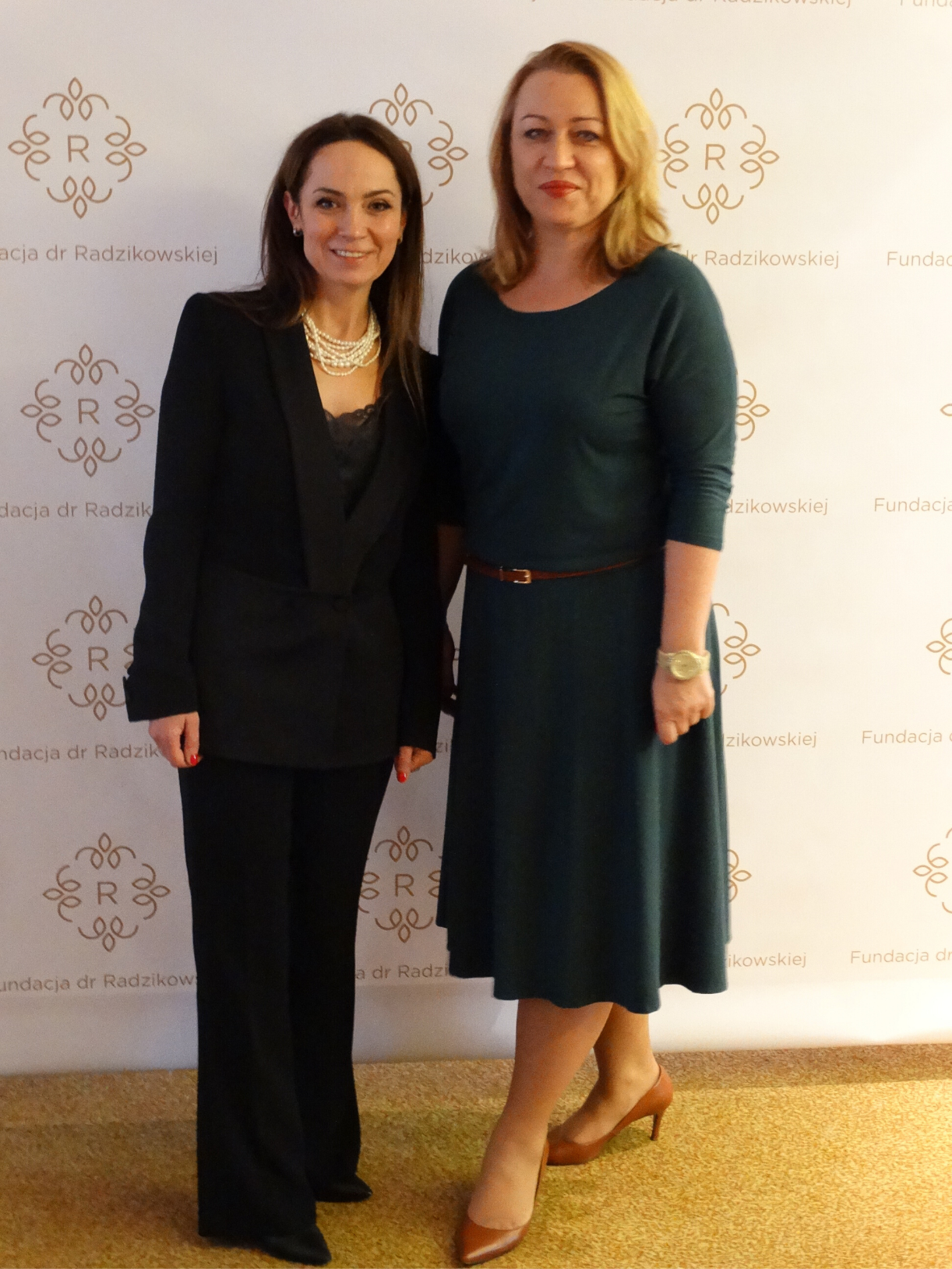 Dr n. med. Elżbieta Radzikowska i prezes Carolina Medical Center Izabella Murawska w trakcie otwarcia Fundacji dr Radzikowskiej.