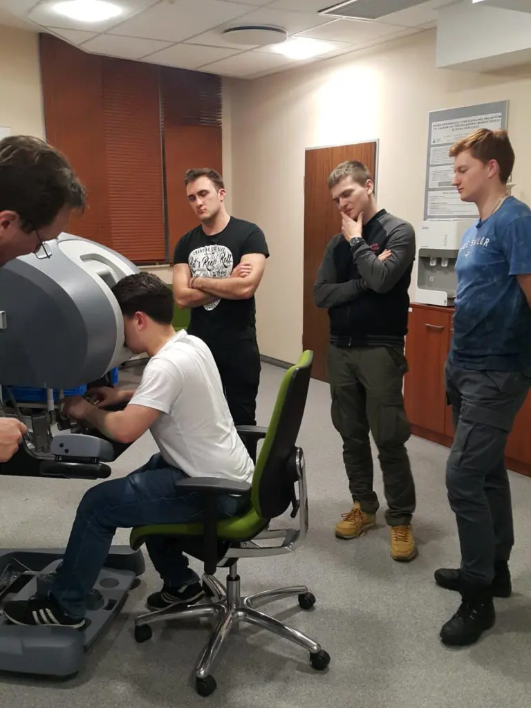 Dzięki uprzejmości firmy Medico Systems studenci mieli unikalną możliwość zapoznania się z jednym z najbardziej imponujących urządzeń – robota operacyjnego da Vinci Si. Podczas praktycznych warsztatów poruszone były problemy współpracy lekarza z systemami medycznymi. Studenci poznali urządzenie od wewnątrz oraz mieli okazję samodzielnie sterować telemanipulatorami. Niezależnie od ilości wykładowej wiedzy, bezcennym doświadczeniem jest osobiste sprawdzenie funkcjonowania tego typu narzędzi oraz poznanie potencjalnych problemów „strony medycznej”.