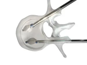 To małoinwazyjny, przezskórny system do stabilizacji (anatomicznej repozycji) kręgosłupa w osteoporotycznych i urazowych złamaniach kompresyjnych kręgosłupa oraz w nowotworach.
