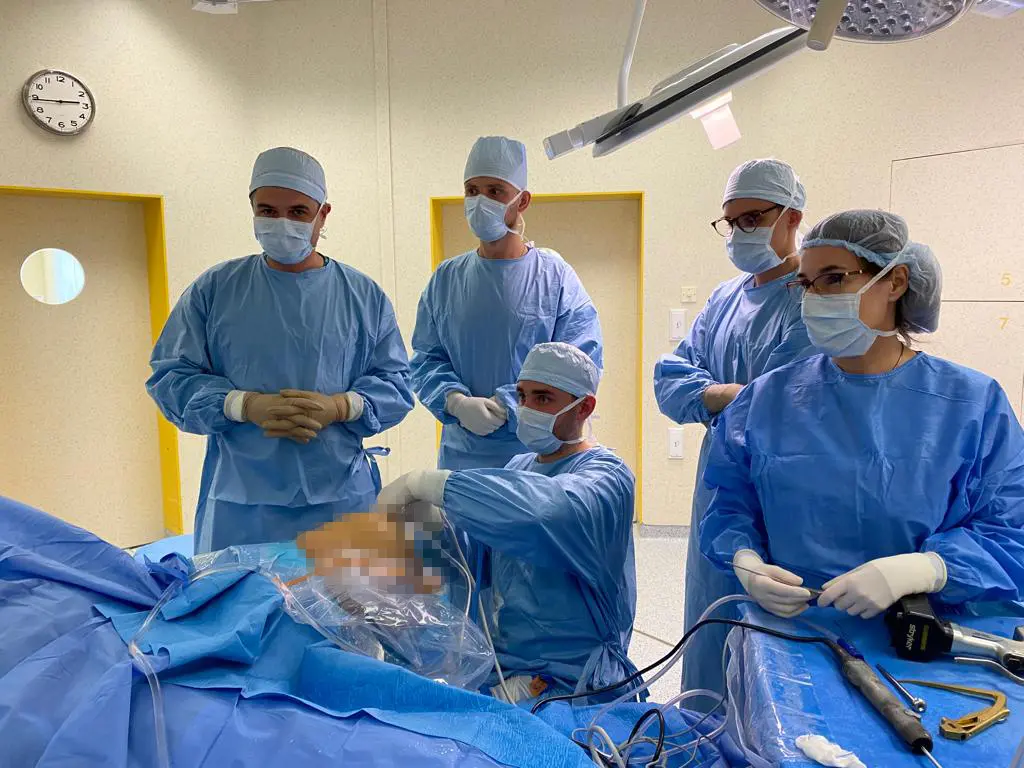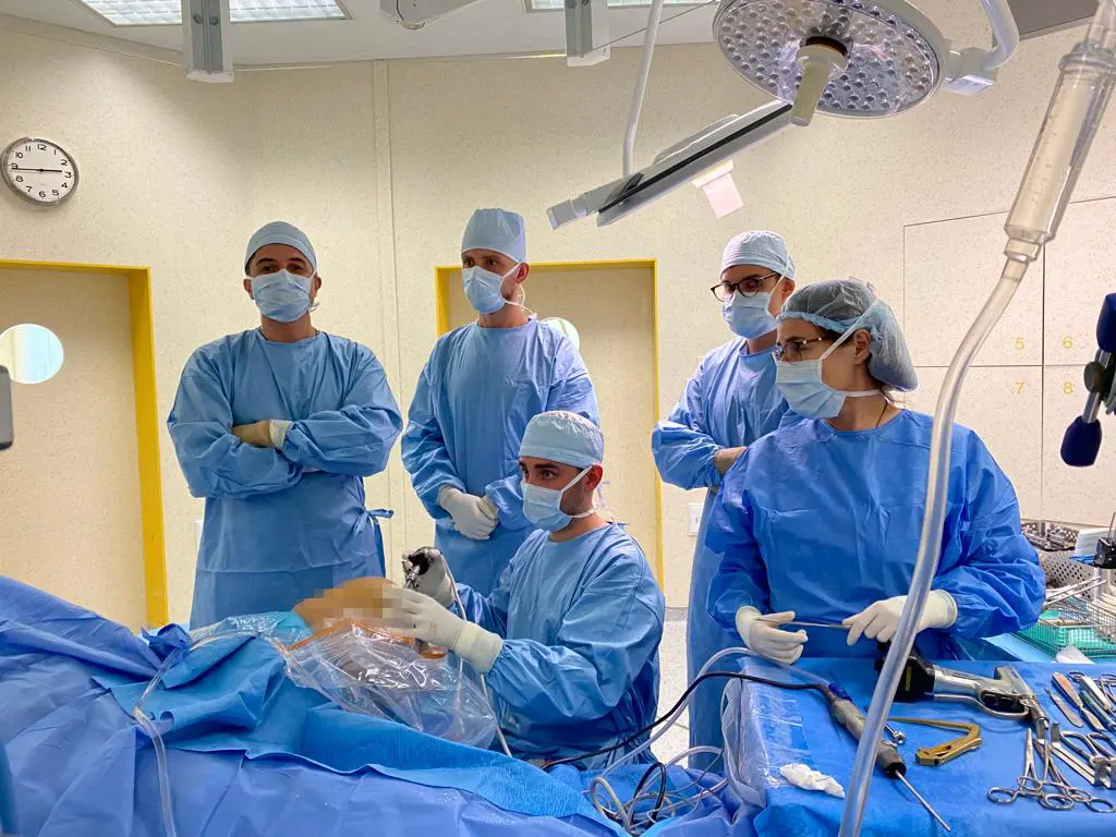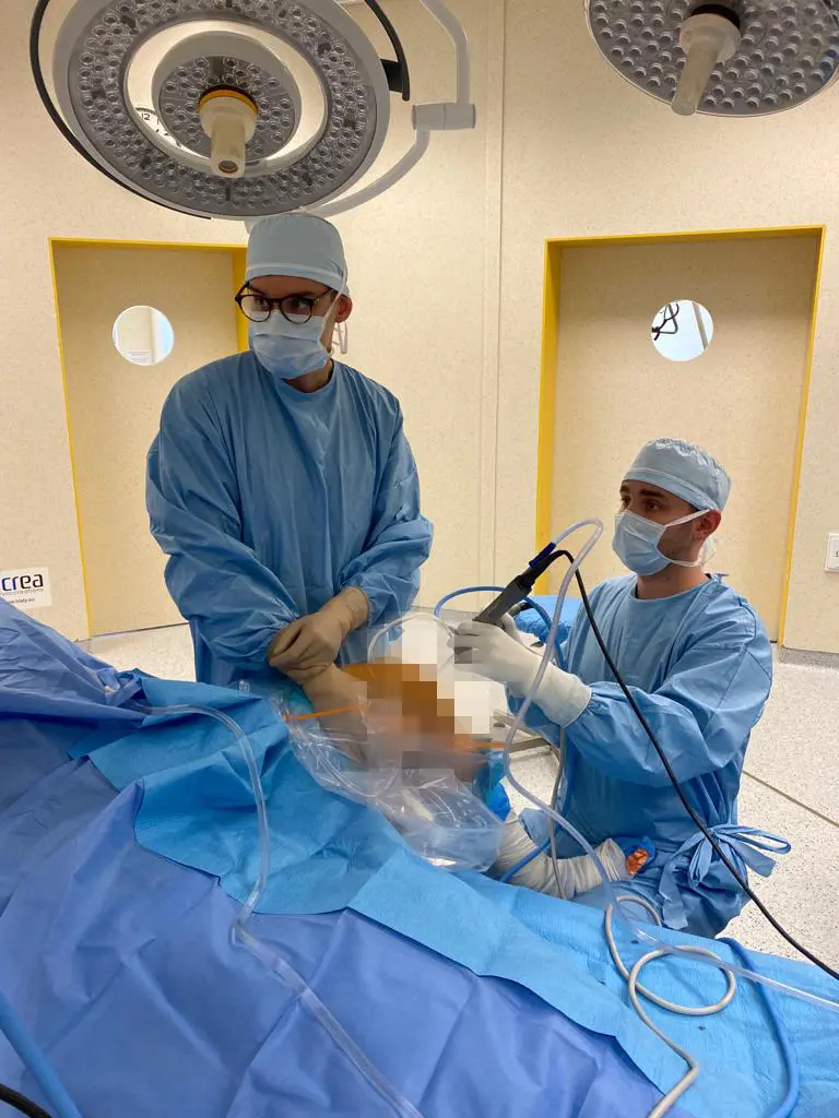 Asysta lek. Jakuba Sobczyka w trakcie operacji.